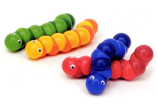 かわいいイモ虫がクネクネ自由自在! いも虫をモチーフにした木のおもちゃです。 球を部分的に切り取ったパーツを丈夫なゴムで連結しているので、ひねると簡単に形を変えられます。いろいろな表情が作れて楽しいお話が生まれそうです。色もデザインも美しく、インテリアとしても素敵です。 ※ご購入の際には、カラーをお選び下さい。 メーカー:ネフ社/スイス サイズ:直径4cm/長さ20cm ※生産の拠点がドイツに移行いたしました。お届けする商品はドイツ製になります。